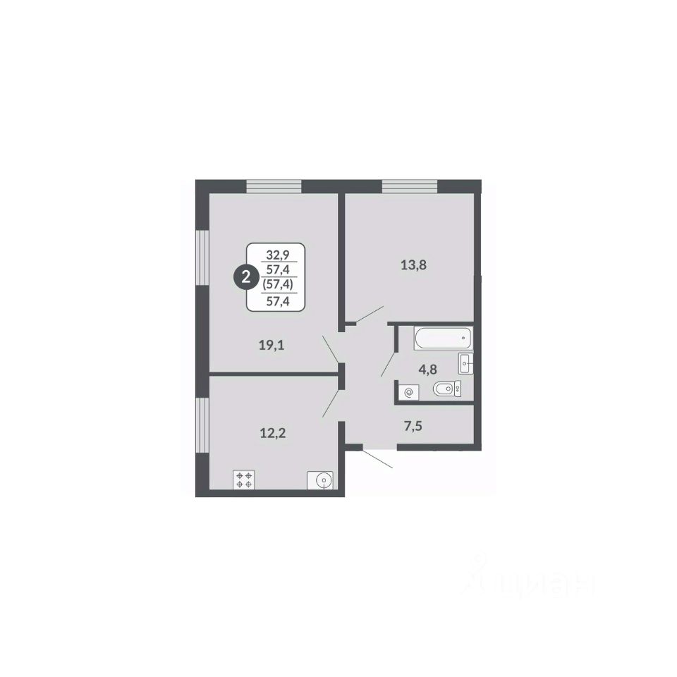 57 м² · Этаж 15 из 17