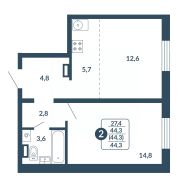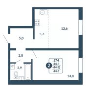 📚 Какая площадь двухкомнатных квартир?