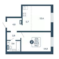 44 м2