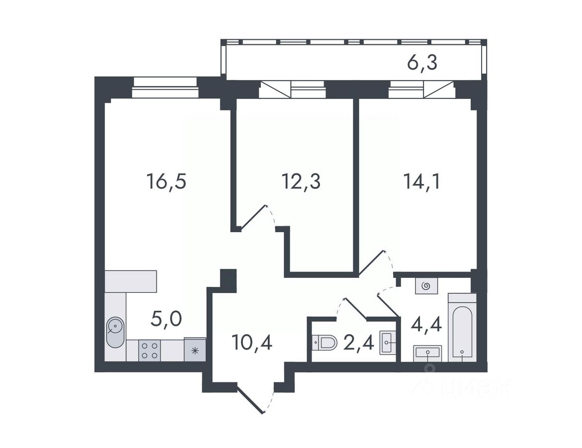 49 м² · Этаж 5 из 16