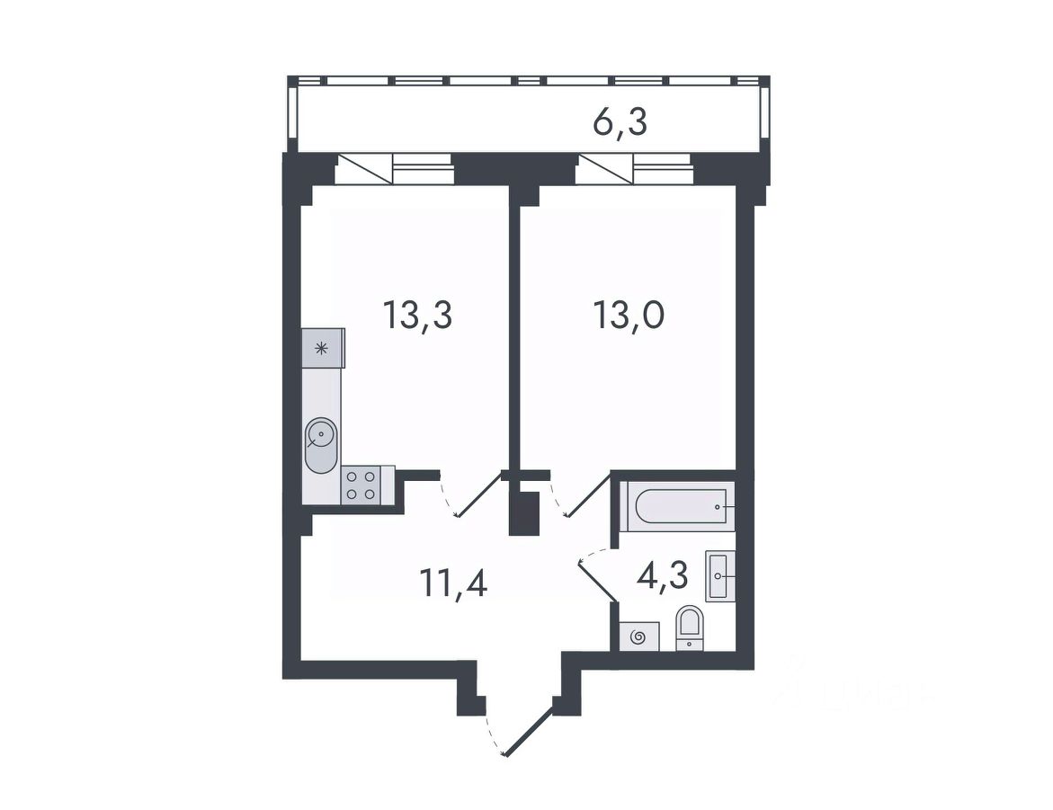44 м² · Этаж 13 из 16