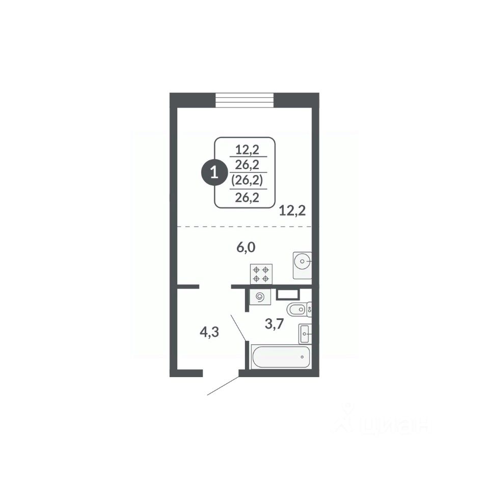 26 м² · Этаж 15 из 17