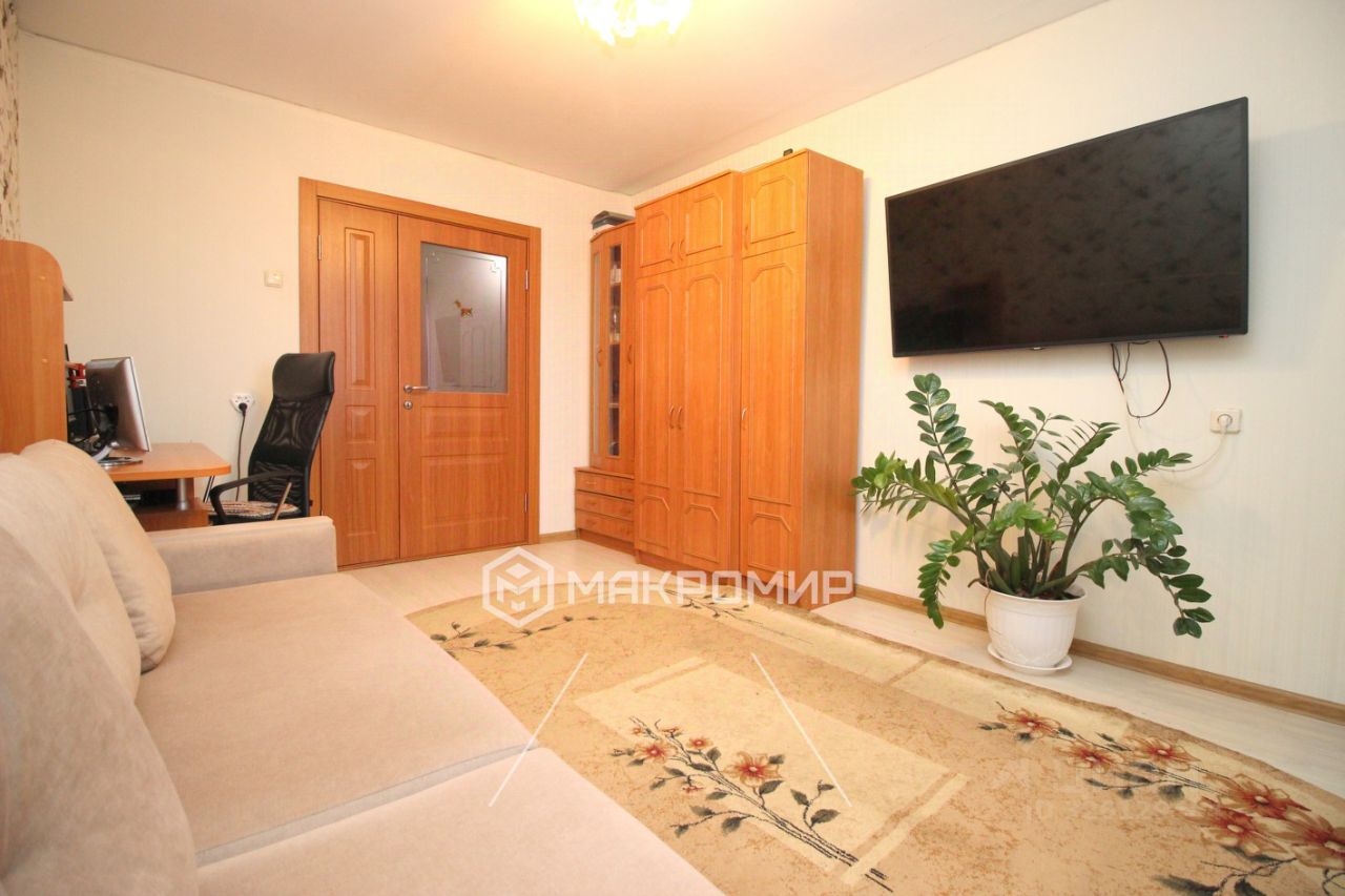 Арт. 129067514 --- Продаю 1 комнатную квартиру общей площадью 35.4 кв.м на ул. Доверия 1 --- Квартира расположена на 7 этаже 10 этажного дома общей площадью 35,4 кв.м., кухня 12.1 кв.м, гостиная 16,9 кв.м. + площадь застекленной лоджии 4 кв.м. --- Состояние квартиры отличное, сделан современный качественный Евро ремонт: обои, ламинат, керамический гранит и плитка Керама Марацци, натяжные потолки, точечные светильники и др. В квартире одна комната и просторная кухня 12.1кв.м.,лоджия с ремонтом. Остается вся строенная мебель и бытовая техника, шкаф-купе, новая кухня, плита, вытяжка, стиральная машина и др. Лоджия из кухни с видом во двор.Отдельного внимания заслуживает выбор и цвет материалов отделки и отличная планировка. Квартира светлая и теплая. --- Дом, 2013 года постройки, панельный, со своей оборудованной придомовой территорией и видеонаблюдением. Рядом с домом достаточно мест для парковки Вашего автомобиля.Чистый подъезд и доброжелательные соседи. --- В шаговой доступности вся необходимая инфраструктура: школа #70 и 11, детские сады, торговый центр Гринхаус, банк Хлынов, аптеки, множество различных магазинов и т. д. Отличная транспортная доступность. --- По квартире нет никаких обременений, один собственник. Квартира готова к знакомству с новыми хозяевами.