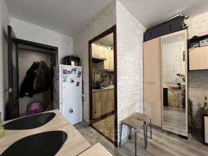 Продается уютная студия с отдельно прихожей и кухонной зоной в мкр Озерки. О доме и месторасположении Квартира расположена в панельном доме 2016 года постройки. Дом находится в новом, динамично развивающемся микрорайоне Озерки. В пешей доступности есть все необходимое для комфортной жизни: продуктовые магазины (Пятерочка и Вьюрок), Магнит-косметик, а также разнообразные специализированные магазины, в трех минутах ходьбы остановки общественного транспорта, для семей с детьми — несколько детских игровых площадок и новый детский сад, для владельцев машин во дворе своя парковка с большим количеством парковочных мест. Хорошая транспортная доступность: на машине до центра города можно доехать за 15-20 минут, до площади Авитек еще быстрее. Хорошая управляющая компания, что обеспечивает низкие коммунальные платежи и ухоженные места общего пользования и придомовой территории. О квартире Планировка квартиры очень функциональная, в которую входит отгороженная зона кухни, обеденная зона и гостиная с выходом на просторную лоджию, совмещенный санузел, а также прихожая с встроенным шкафом-купе (планировка ''буквой Г''). Состояние хорошее, на полу в прихожей и зоне кухни керамогранит, в комнате ламинат, в санузле кафель, окно пластиковое, установлена металлическая входная дверь, лоджия застеклена пластиковыми стеклопакетами. Квартира расположена на среднем восьмом этаже, теплая, окна выходят на юго-запад. При продаже в квартире остается шкаф в прихожей, встроенный кухонный гарнитур, варочная панель, вытяжка, стенка-горка со шкафом в комнате. По документам Один взрослый собственник. Если у вас остались вопросы или вы хотите организовать просмотр, звоните.