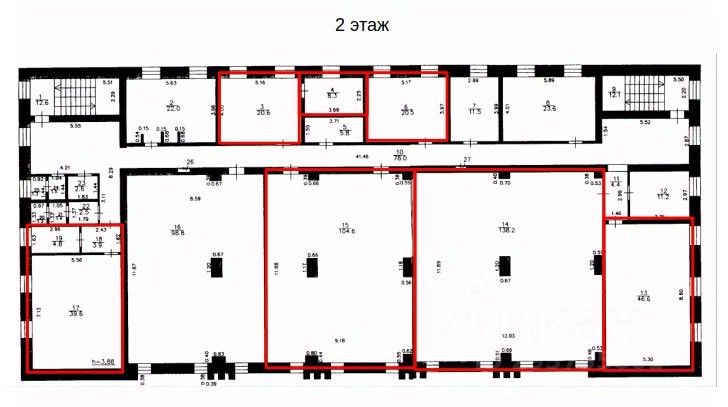 В аренду сдаются помещения свободного назначения от 20,5 кв. м до 138,2 кв. м на 2 этаже, от 4,8 кв. м до 27,8 кв. м на 3 этаже.