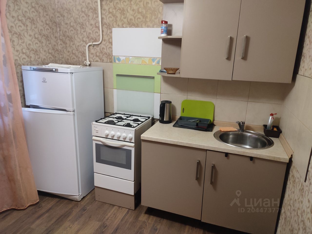 холодильник, чайник, микроволновая печь, стиральная машина (автомат)телевизор, фен, утюг, пылесос, газ плита с эл. грилем, посуда.