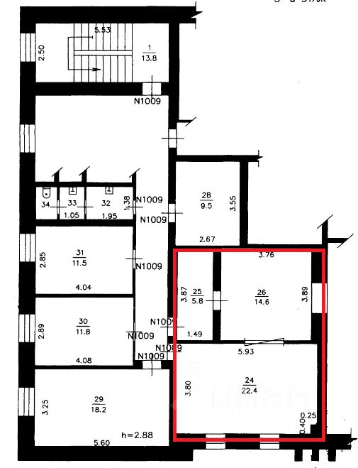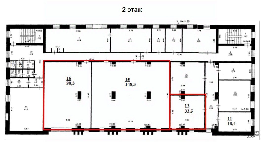 В аренду сдаются помещения свободного назначения: площадью 33,5 кв. м, 90,3 кв. м, 148,3 кв. м на 2 этаже, площадью 22,4 кв. м и блок помещений 20,4 кв. м на 3 этаже.