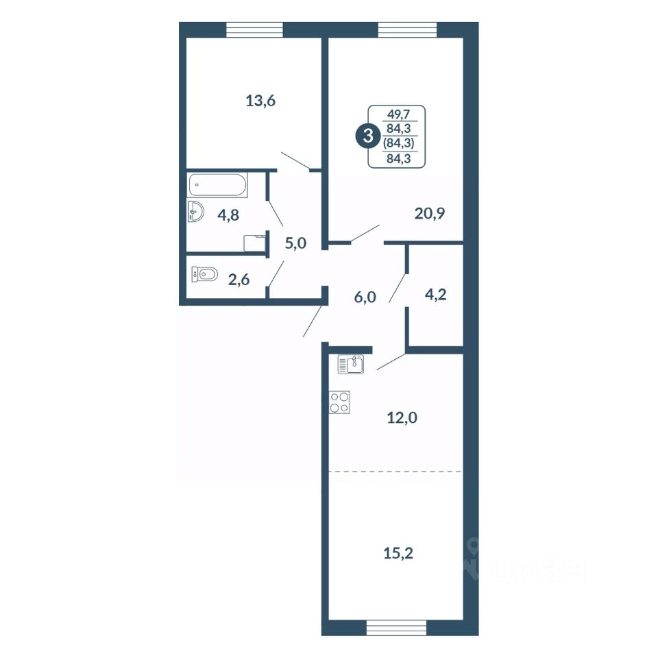 Общая площадь84,3 м2