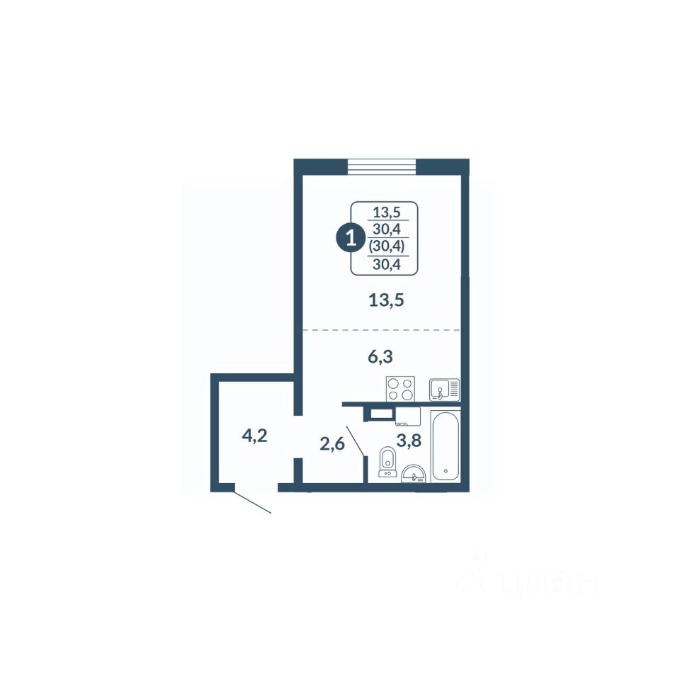 Общая площадь30,4 м2