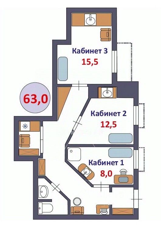 Высокий цоколь с окнами. Отдельный вход, сигнализация. Три изолированных кабинета - 15,5 + 12,5 + 8. Три мокрые точки, кондиционер, сан.узел с водонагревателем, мини - кухня для сотрудников, зона ресепшен. Для удобства - домофон заведен прямо в кабинеты, если график сотрудников не совпадает с работой администратора, например. В целом, очень много ''фишек'' для комфортной работы и получения высокого дохода.