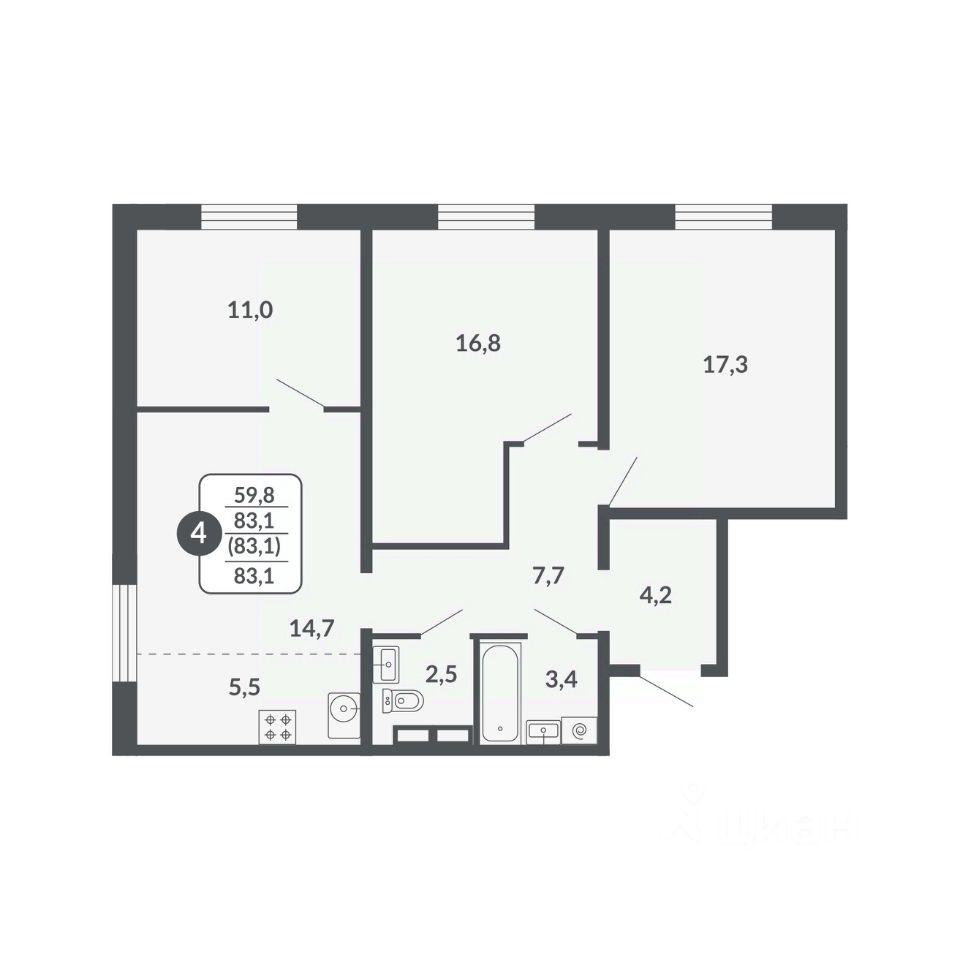 продам 4-к, Московская, 2098 725 500 ₽