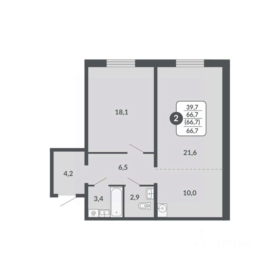 Общая площадь66,7 м2