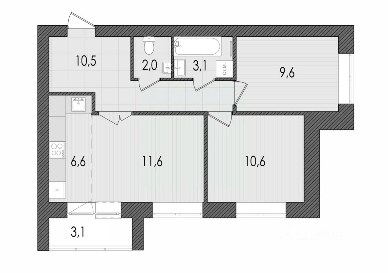 3-комнатная, 57.1 м², 41 по адресу Дорофеева, 22 Тип дома: Кирпич. Жилой комплекс ''LIFE | Лайф''Преимущества покупки квартиры в новостройке напрямую от застройщика КСМ: