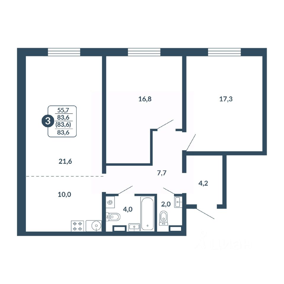 Общая площадь83,6 м2