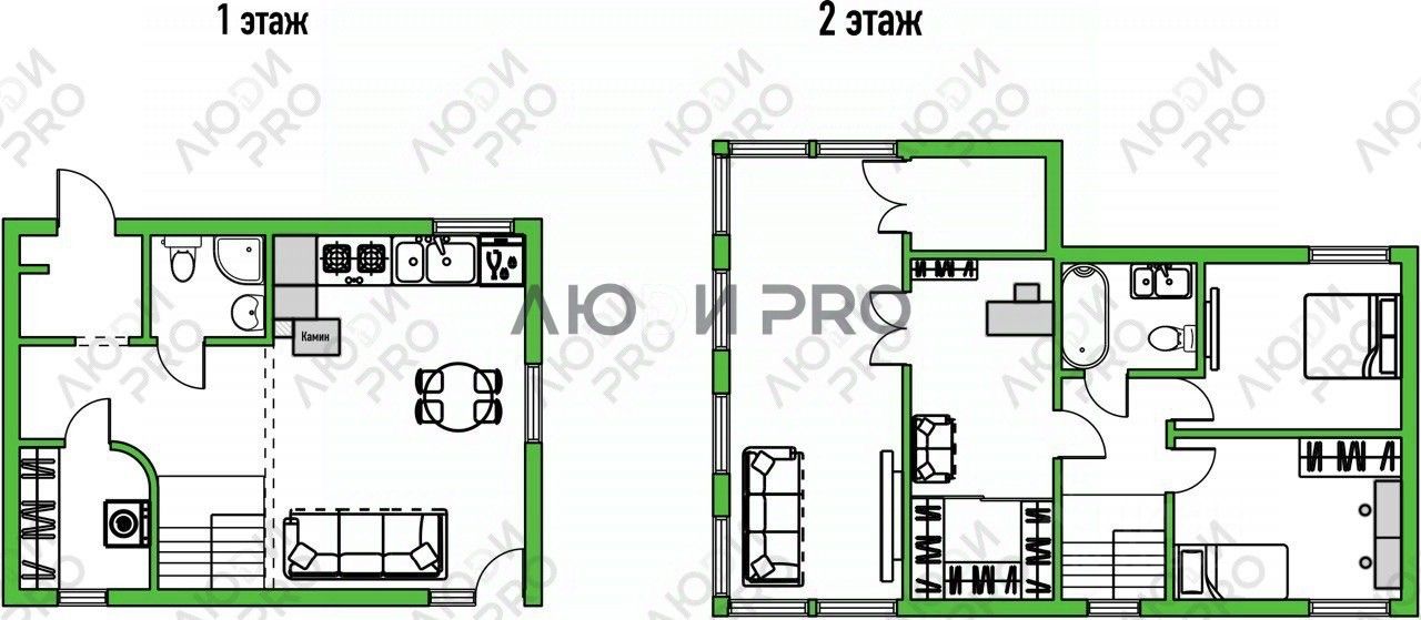Первый этаж (40 кв.м): • Просторная кухня-гостиная (25 кв.м) с выходом на террасу, идеальная для семейных ужинов. • Совмещенный санузел и прачечная. • Уютный дровяной камин для создания атмосферы уюта.
