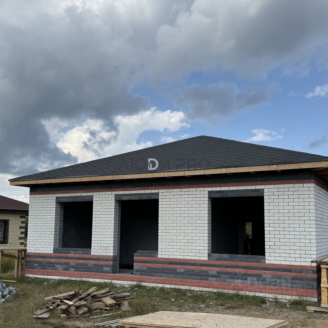 КОНСТРУКТИВ ДОМА: Фундамент дома: монолитная плита - Залита монолитная армированная плита - Сделана полная гидроизоляция Стены дома: газобетонные блоки 300 мм + облицованы керамическим кирпичом (долговечен, идеально подходит для нашего климата, долго сохраняет эстетический внешний вид) - Базальтовый утеплитель толщиной 50 мм. Армированный пояс под крышу. Четырехскатная (вальмовая) крыша. Крыша уложена мягкой кровлей ''Шинглас'', благодаря чему снег весной не скатывается, а тает полностью.