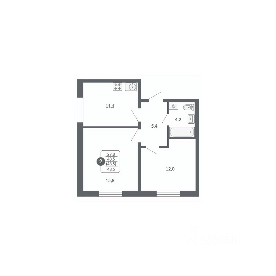 Общая площадь48,5 м2