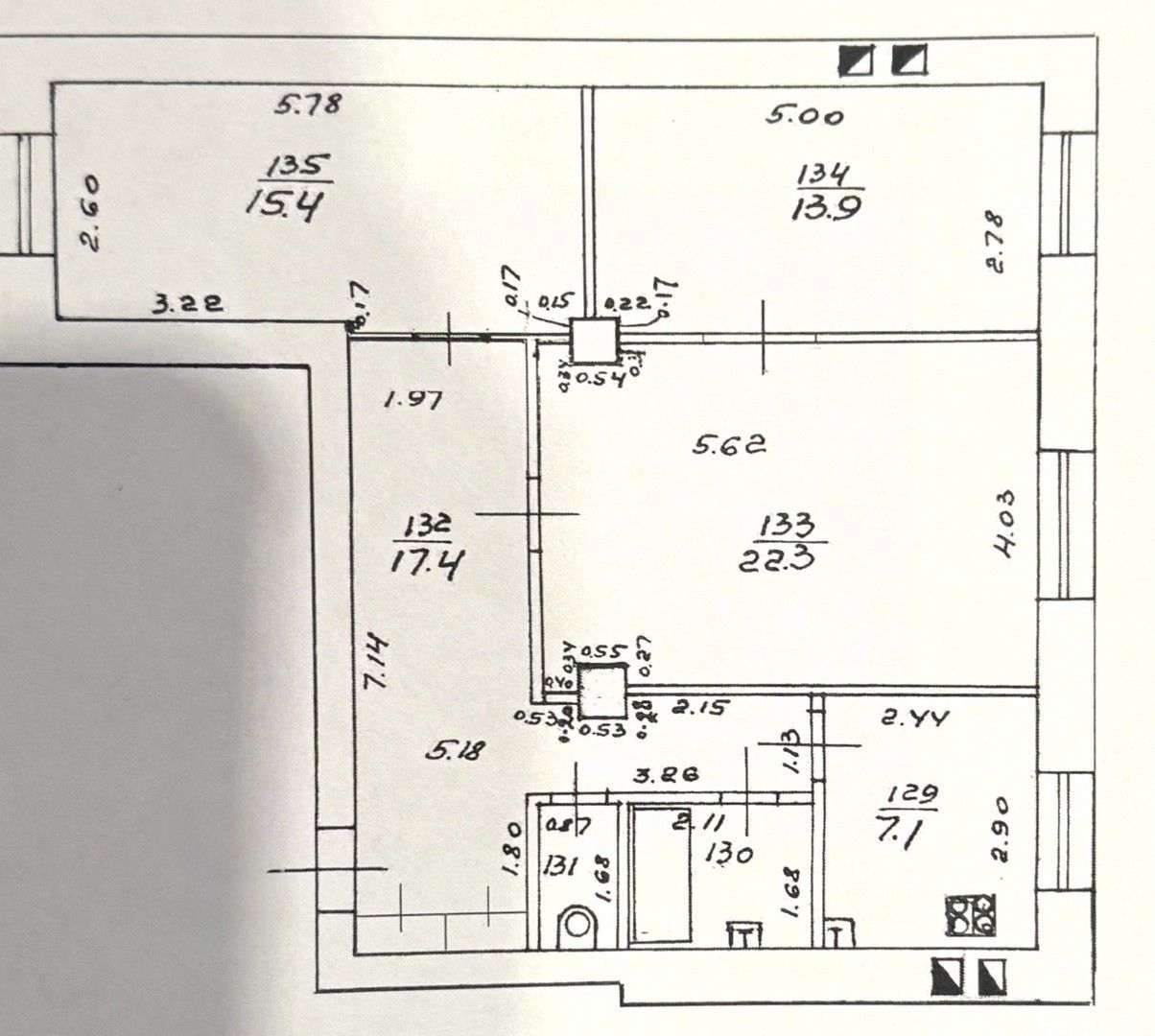 ПЛАНИРОВКА. Имеются комната 22,3 м, спальни по 15,4 м и 13,9 м. Кухня 7,1 м. Квартира подходит под перепланировку.