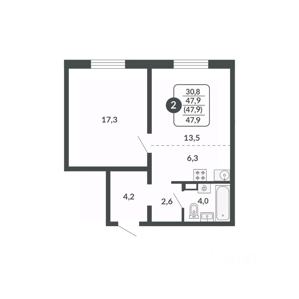 Общая площадь47,9 м2