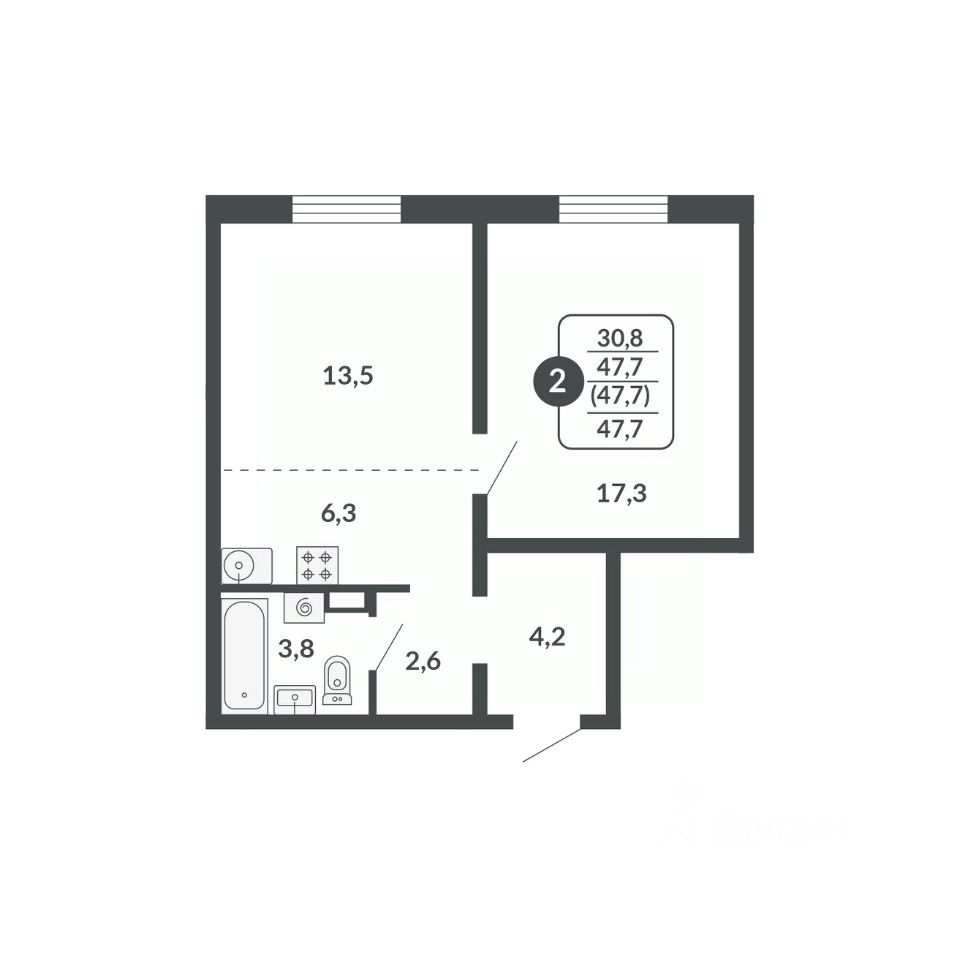 Общая площадь47,7 м2