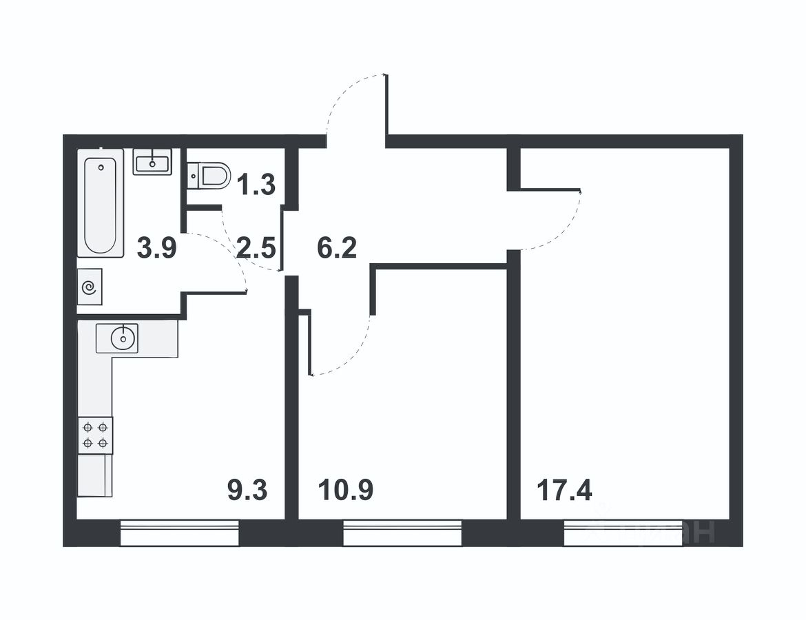 Общая площадь51,5 м2