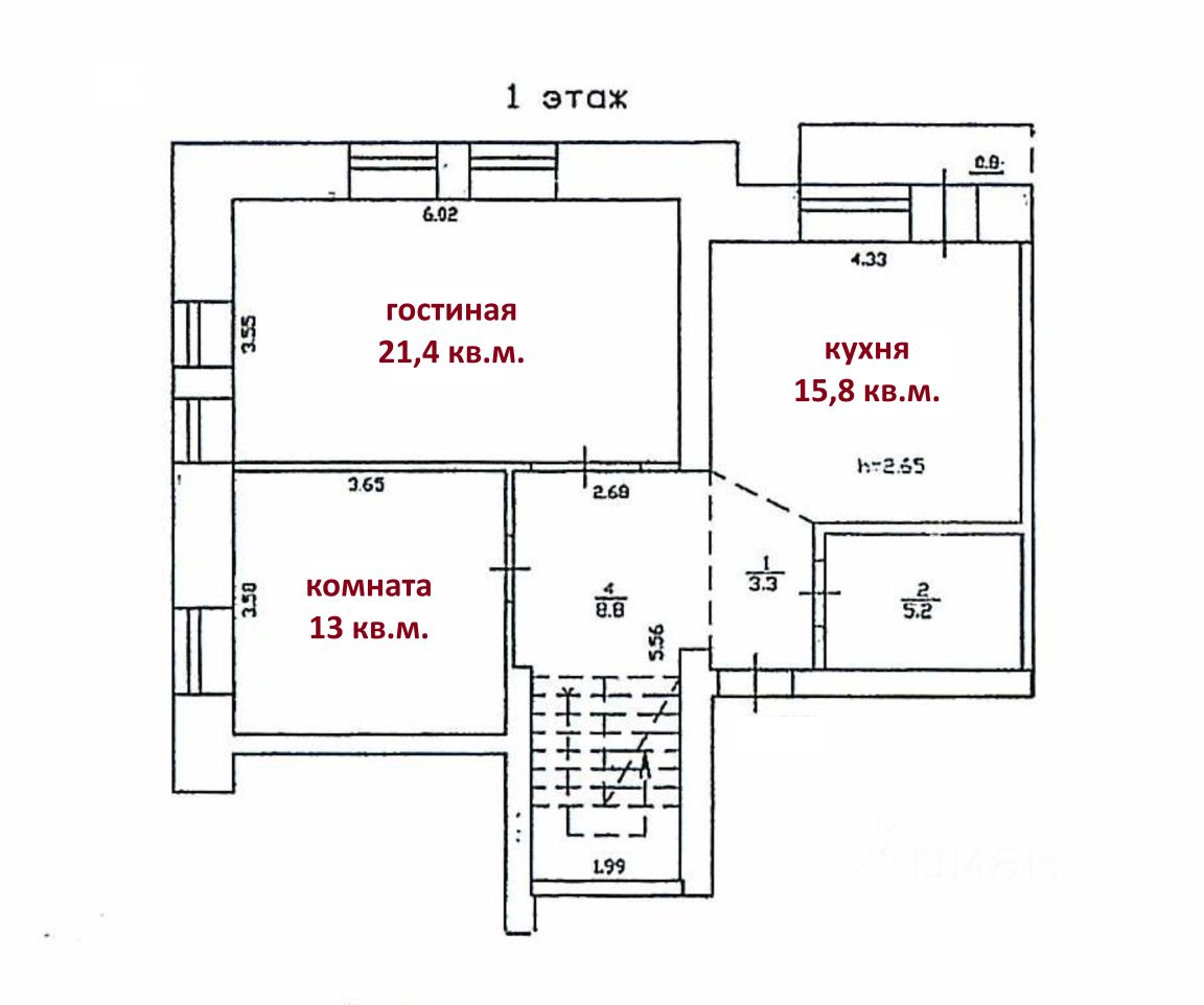 На 1 этаже квартиры расположены: кухня-столовая 16 кв.м. с выходом на лоджию, гостиная с камином 21 кв.м., комната 13 кв.м. и раздельный санузел.