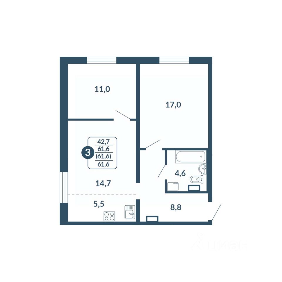 Общая площадь61,6 м2
