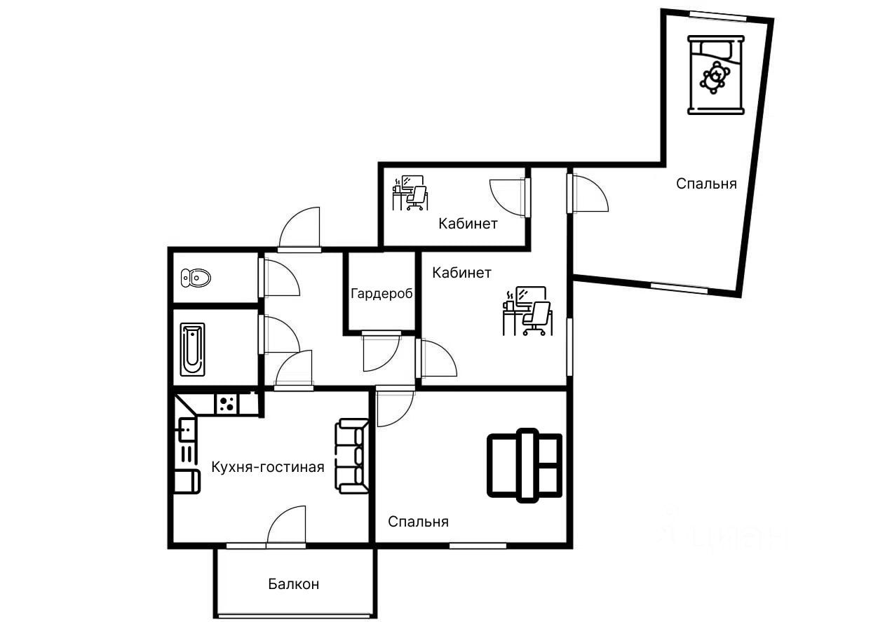 Идеально для семьи с детьми и работы из дома. Планировка позволяет организовать два раздельных кабинета — вдали от кухни и жилых комнат, никто никому не мешает. Квартира угловая (но теплая), на этаже находится в стороне от остальных квартир - благодаря этому нет лишнего шума от соседей.