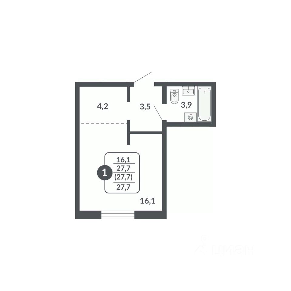 Общая площадь27,7 м2