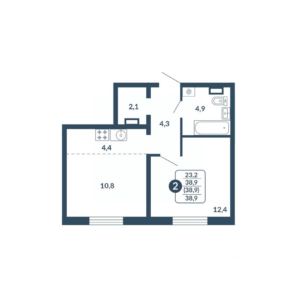 Общая площадь38,9 м2