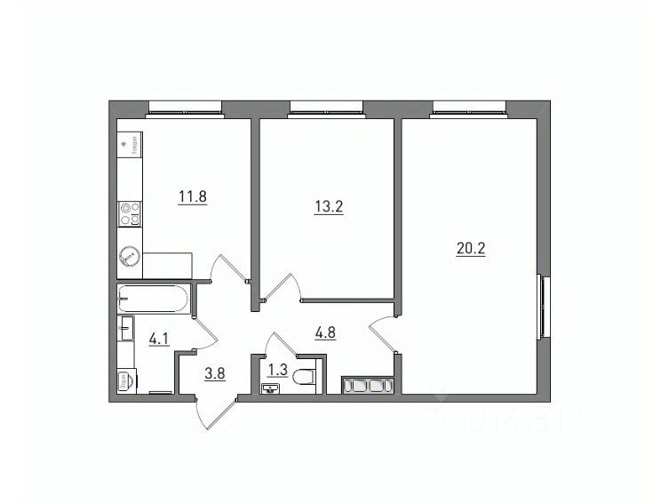 Общая площадь59,2 м2