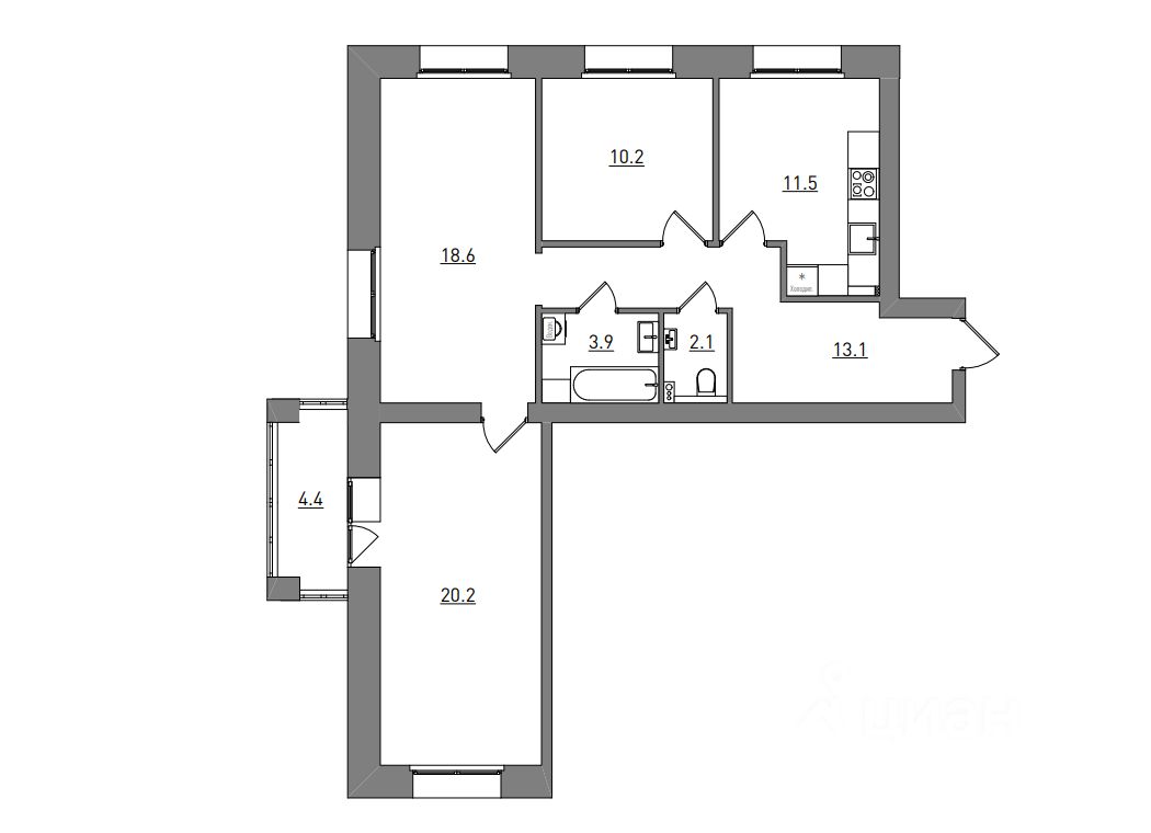 3-комнатная, 84 м², 123 по адресу Парковая, д.1В Тип дома: Кирпич. Жилой комплекс ''Сити Парк''Преимущества покупки квартиры в новостройке напрямую от застройщика КСМ: