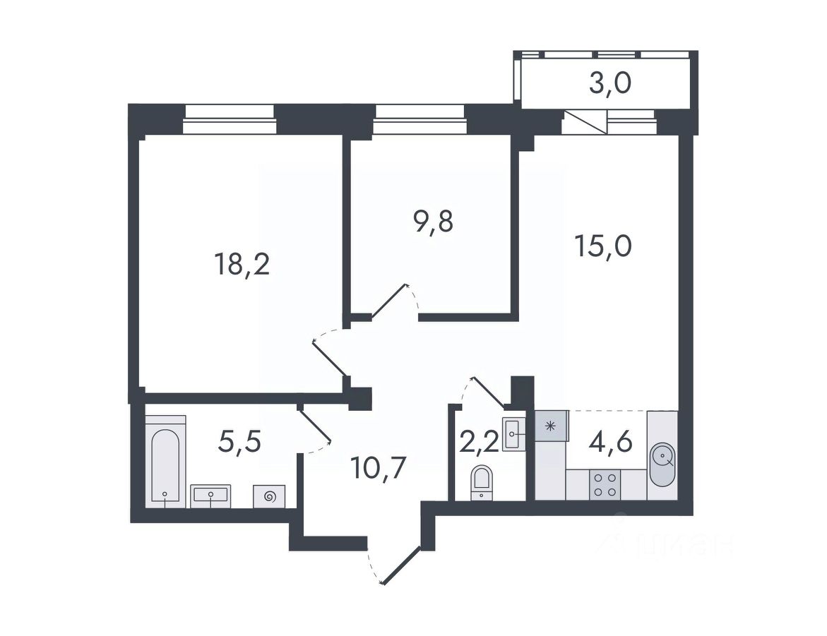 3-комнатная, 69 м², 14 по адресу Чистопрудненская, д. 13 Тип дома: Каркас/кирпич. Микрорайон ''Чистые пруды''Преимущества покупки квартиры в новостройке напрямую от застройщика КСМ: