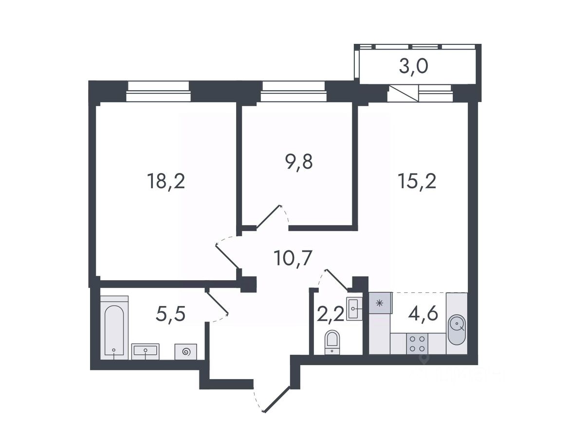 3-комнатная, 69.2 м², 113 по адресу Чистопрудненская, д. 13 Тип дома: Каркас/кирпич. Микрорайон ''Чистые пруды''Преимущества покупки квартиры в новостройке напрямую от застройщика КСМ: