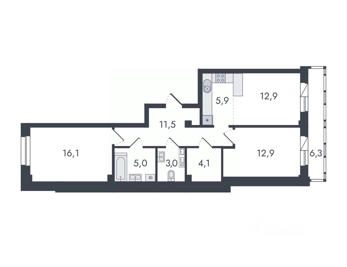 3-комнатная, 77.7 м², 110 по адресу Чистопрудненская, д. 13 Тип дома: Каркас/кирпич. Микрорайон ''Чистые пруды''Преимущества покупки квартиры в новостройке напрямую от застройщика КСМ: