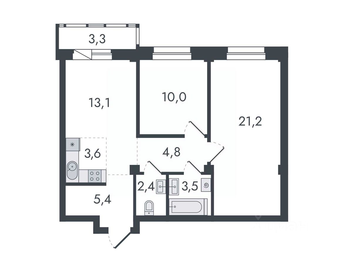 3-комнатная, 67.3 м², 200 по адресу Чистопрудненская, д. 13 Тип дома: Каркас/кирпич. Микрорайон ''Чистые пруды''Преимущества покупки квартиры в новостройке напрямую от застройщика КСМ: