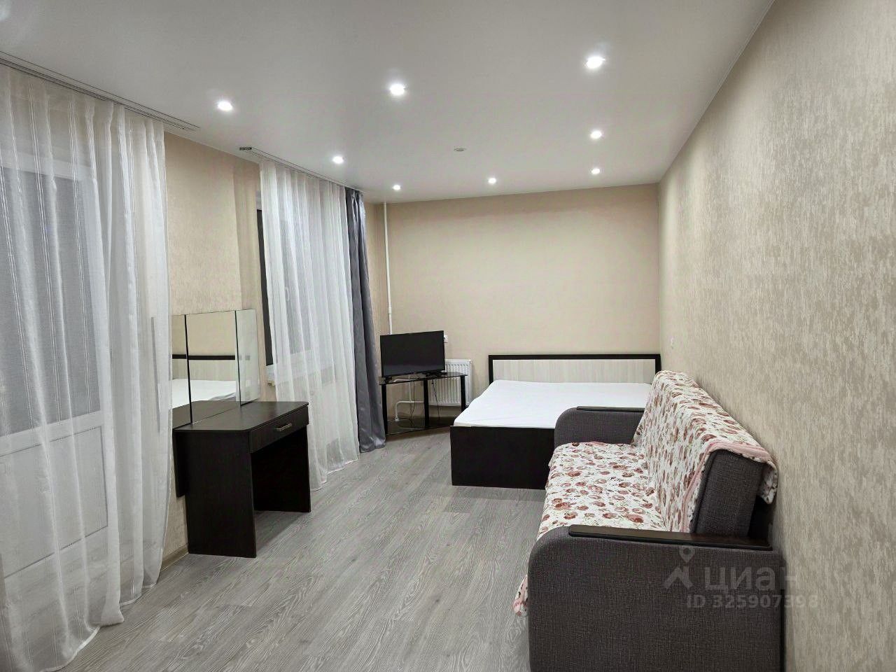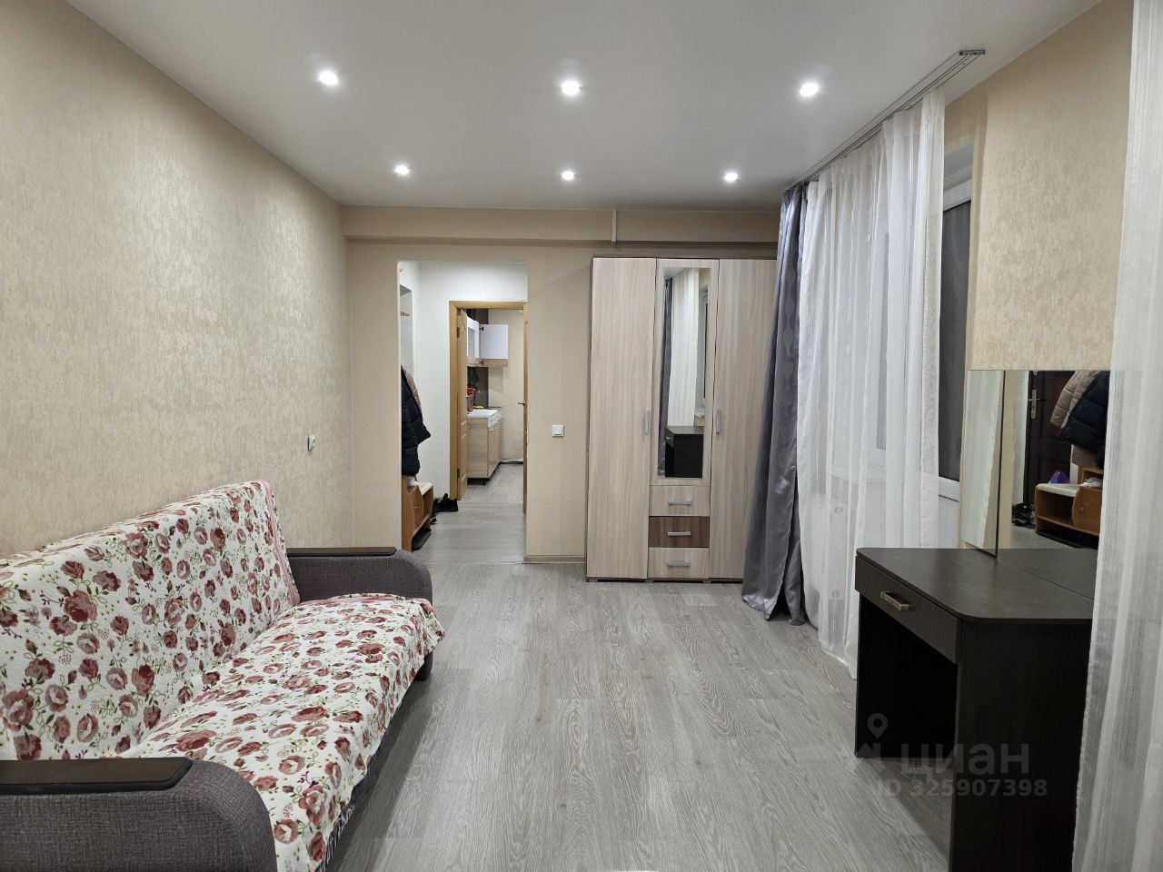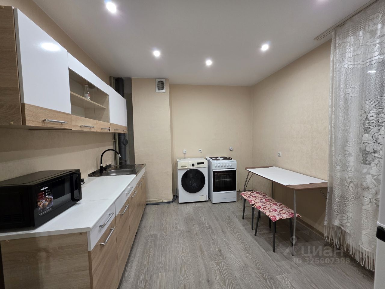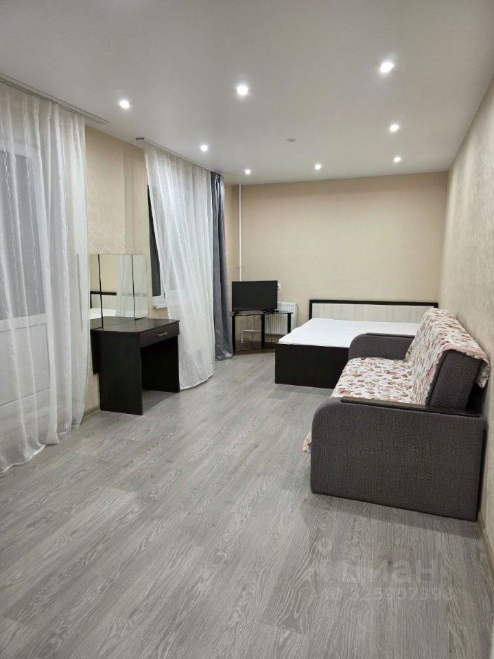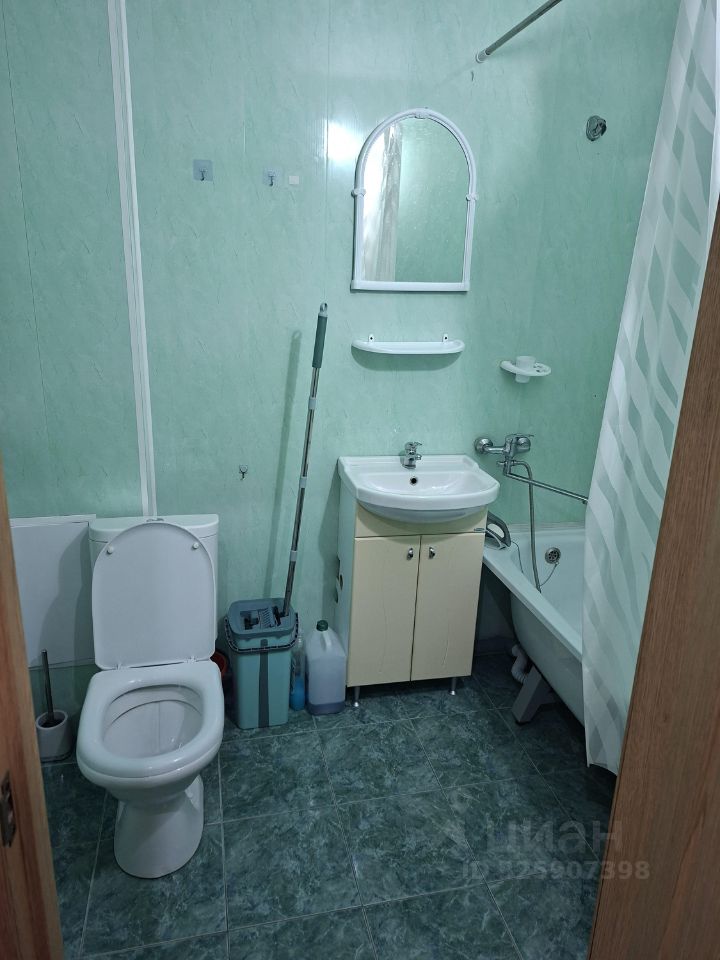 В квартире есть вся необходимая мебель как в комнате, так и на кухне. Из техники — холодильник, телевизор и стиральная машина. Санузел совмещенный, с ванной. Также имеется лоджия, где можно устроить зону отдыха или хранение.
