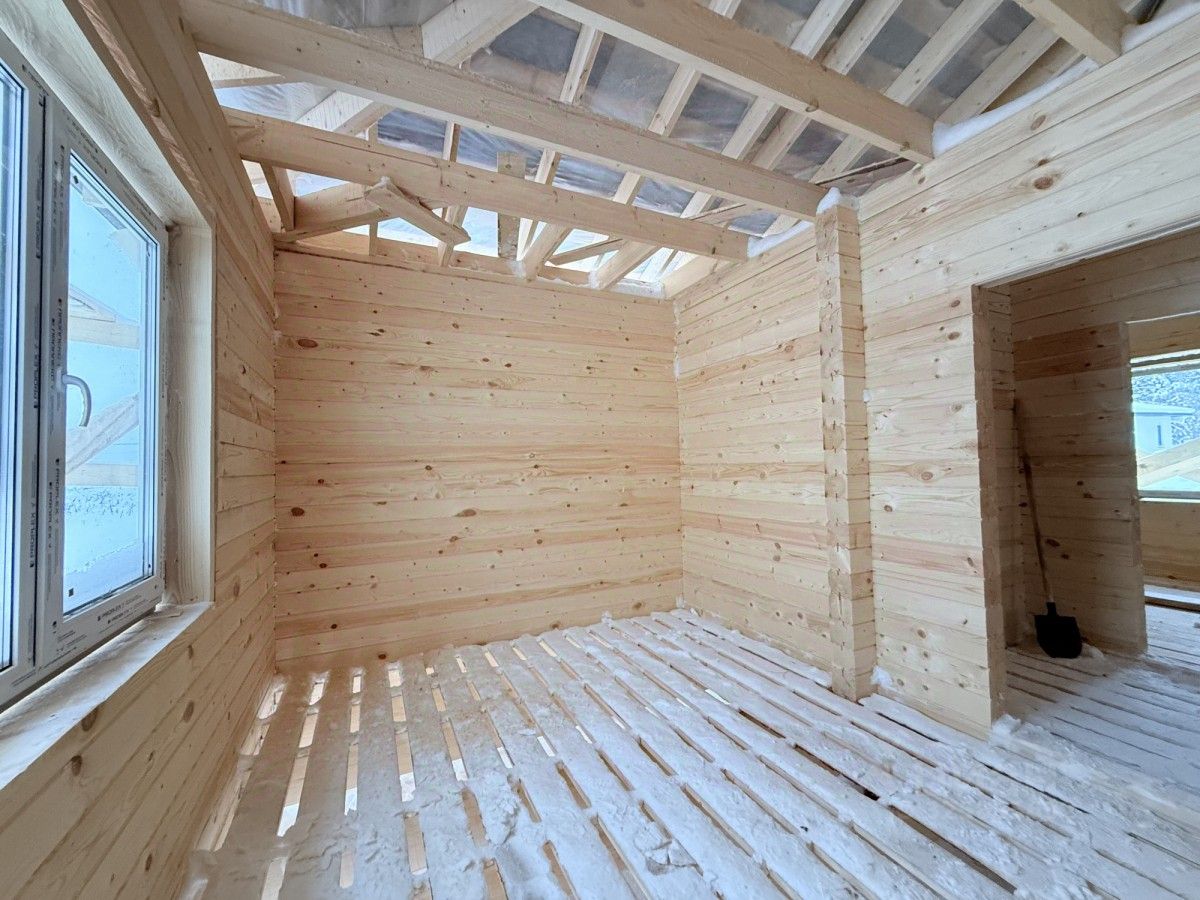 Дом собран на ''SilaRex'' ( система пружинных крепежей, предназначенная для надежного и долговечного соединения брусьев).