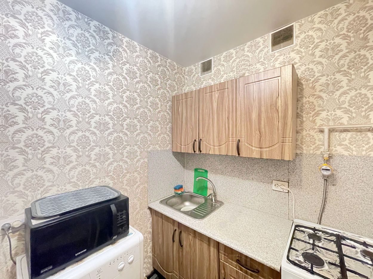 ** Квартира не угловая. Общая площадь: 46 кв.м., комнаты: 15 кв.м. и 14 кв.м. (изолированы), кухня: 6 кв.м., санузел раздельный. Окна (пластиковые стеклопакеты) выходят на разные стороны дома. В квартире натяжные потолки, есть кладовка (дополнительная зона хранения). Окна балкона выходят во двор.