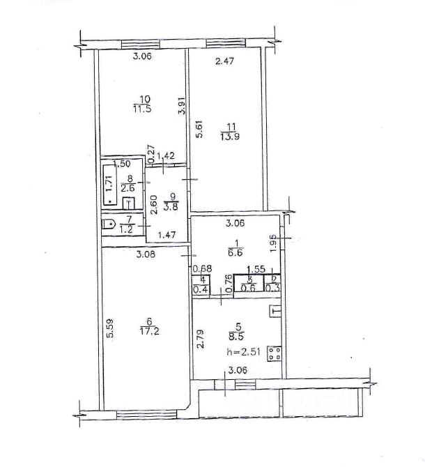 ** Шикарная планировка. Общая площадь: 67 кв. м. + лоджия: 6 кв.м., просторная кухня: 8,5 кв.м., с выходом на лоджию, три изолированные комнаты: 17,2 кв.м., 13,9 кв.м., и 11,5 кв.м., большая прихожая: 8 кв.м. Санузел раздельный. Окна (пластиковые стеклопакеты) выходят на разные стороны дома - дополнительное освещение и проветривание.