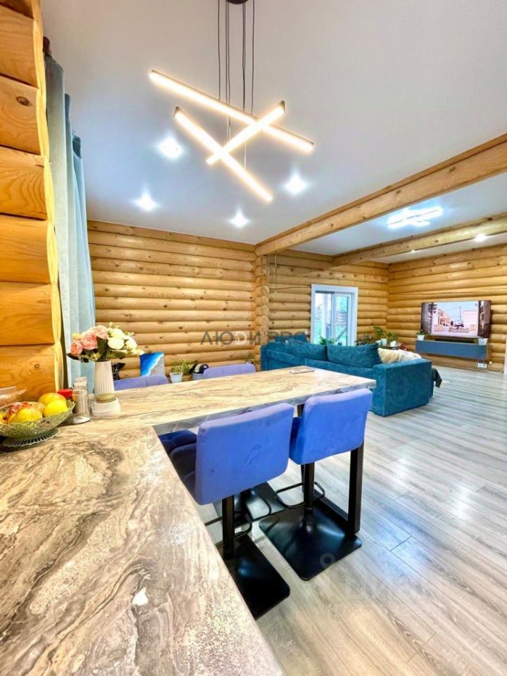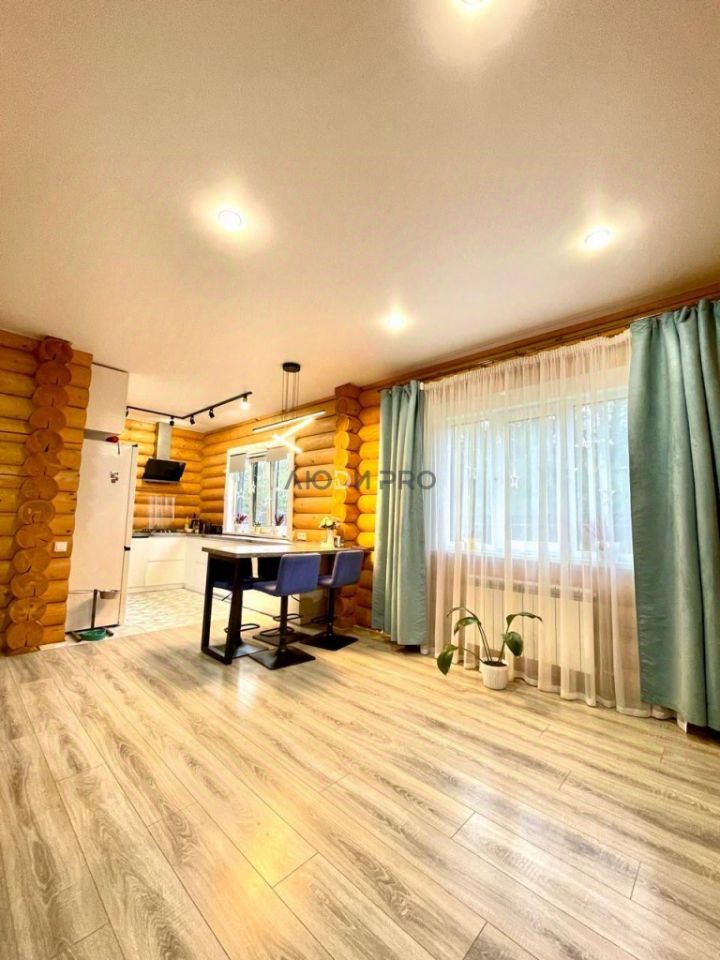 Описание дома: • Оцилиндрованное бревно • Год постройки: 2021 • Общая площадь: 110 кв.м. • Комнаты: Просторные и светлые по 14,5 кв.м. • Кухня-гостиная: 50 кв.м. с выходом на террасу • Санузел 7,6 кв.м. • Высота потолка: 3 м. • Окна: Пластиковые • Потолки: Натяжные • Крыша: Каскадная металлочерепица.
