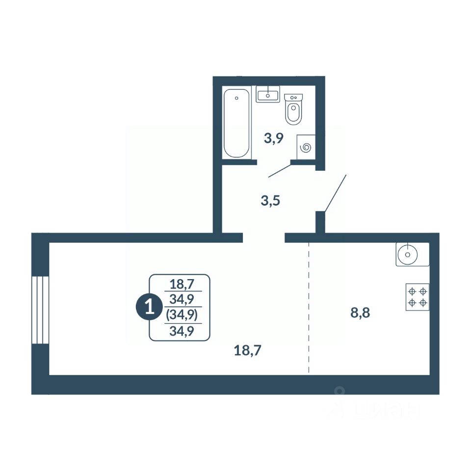 Общая площадь34,9 м2