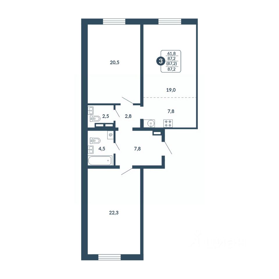 Общая площадь87,2 м2