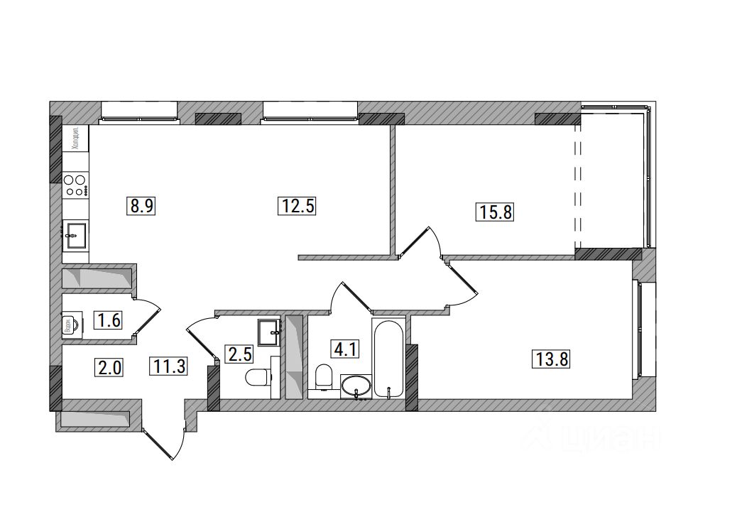 3-комнатная, 73.4 м², 12 по адресу Мелькомбинатовский, 3 Тип дома: Монолит. Жилой комплекс ''Видный''Преимущества покупки квартиры в новостройке напрямую от застройщика КСМ: