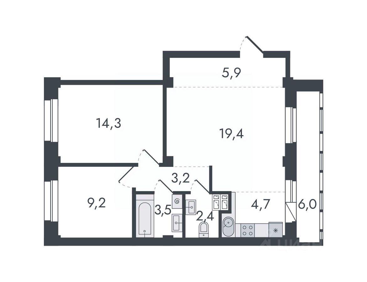 Общая площадь68,6 м2