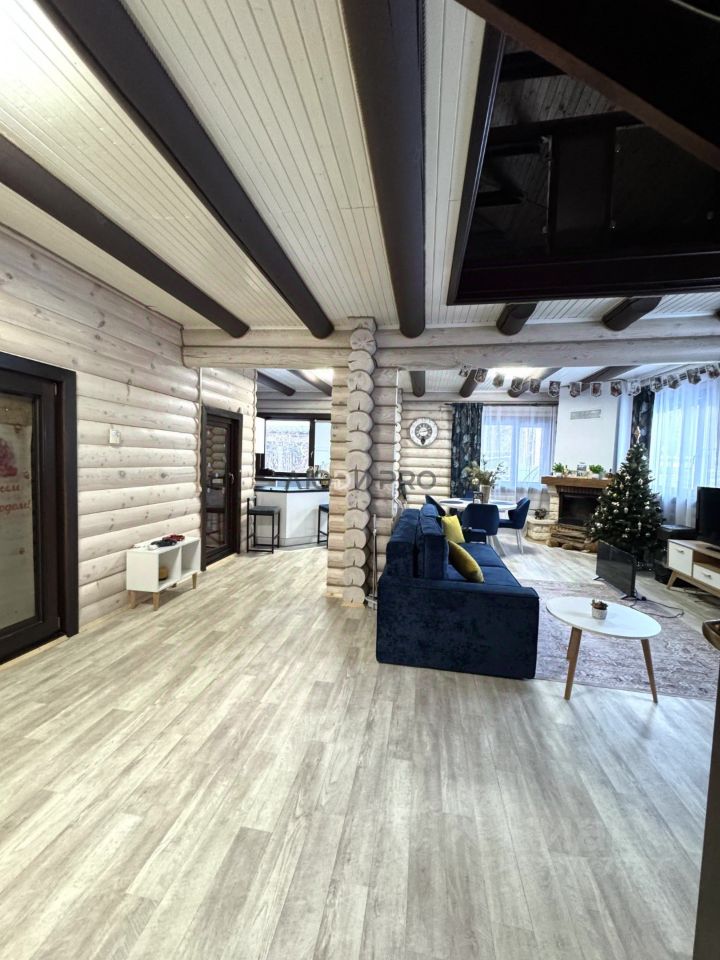 Дом 2 этажа (есть цокольный этаж) площадью 172 кв. м, выполнен современный ремонт, мебелирован, бытовая техника, система видеонаблюдения, охрана, интернет. Водоснабжение - скважина глубиной более 50 м, установлены дополнительно фильтры, канализация - септик переливной 4 кольца, отопление - электрокотел ( идет активная подача заявлений на газификацию). Планировка: 1 этаж кухня-гостиная 52 кв.м с камином, новой кухонной мебелью с барной стойкой и стульями, бытовой техникой ( посудомойка 60 см Bosch, новый холодильник, вытяжка, электрический духовой шкаф, варочная поверхность, микроволновка). Из мебели стол с мягкими стульями, диван, тумба, телевизор, элементы декора. Две отдельные комнаты по 15.4 кв.м в современном ремонте и с мебелью. 2 этаж: Обустроена зона отдыха 56 кв.м с выходом на террасу 14 кв.м. с мебелью. Комфортный диван (трансформируется в разные положения), телевизор, тумба, кресло и др. Пол паркет, все окна в доме дерево. Лестница на второй этаж из дерева ''Вишни'', что еще раз подчеркивает натуральность