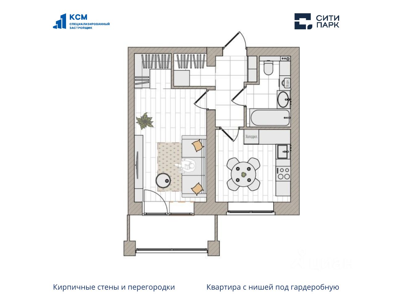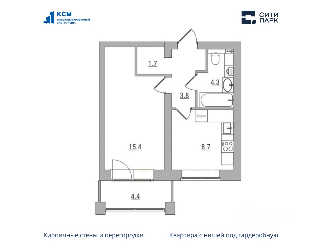 1-комнатная, 38.3 м², 71 по адресу Парковая, 1б Тип дома: Кирпич. Жилой комплекс ''Сити Парк''Преимущества покупки квартиры в новостройке напрямую от застройщика КСМ: