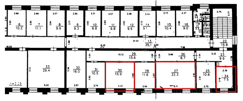 В аренду сдаются помещения площадью 15,9 кв. м, 22,3 кв. м, 7,5 кв. м на 3 этаже.